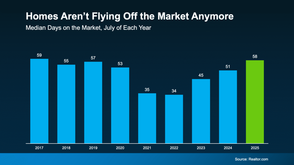 Today, the pace of the housing market is much more manageable. According to the latest data, homes are now spending an average of 58 days on the market. Compare that to the height of the pandemic, when homes disappeared in just days, and you can see the shift is huge.